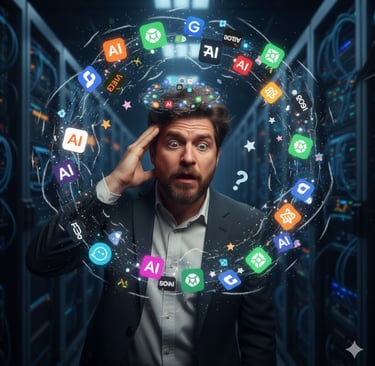 You're drowning in AI tool announcements and it's causing decision paralysis. Good news: You only need 3 tools (a generalist chatbot, a task-specific specialist, and an embedded copilot). Stop researching. Pick three. Learn them deeply. Ignore everything else. The 5% difference between tools is irrelevant compared to the 500% productivity loss from perpetual tool-shopping. You're already capable—the overwhelm is manufactured. Read on for how to break free.